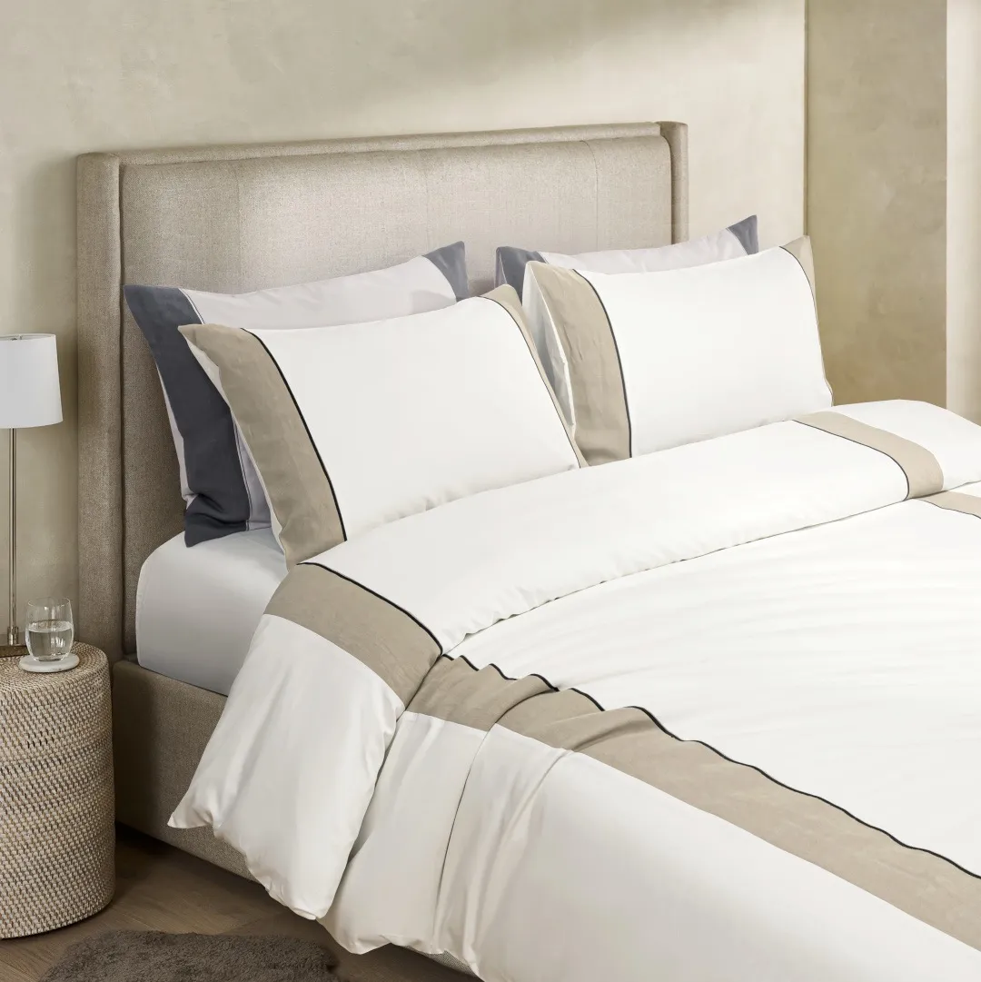 1. Превосходная ткань: Основой служит хлопковое полотно с длинными волокнами (long-staple cotton), которое само по себе обладает мягкостью и гладкостью, не требующей дополнительного сатинового переплетения. Оно мягкое, но устойчивое к сминанию, обладает плотной и весомой структурой.